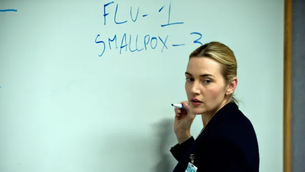 “What we need to determine is this,” epidemiologist Dr. Erin Mears (Kate Winslet) patiently explains at the whiteboard. “For every person who gets sick, how many other people are they likely to infect?” She scrawls the following figures on the board: FLU-1, SMALLPOX-3, POLIO-4/6. “We call that number the R-naught.” A state public health official offers a huffy rebuke: “So far, that appears to be everyone with hands, a mouth and a nose.”