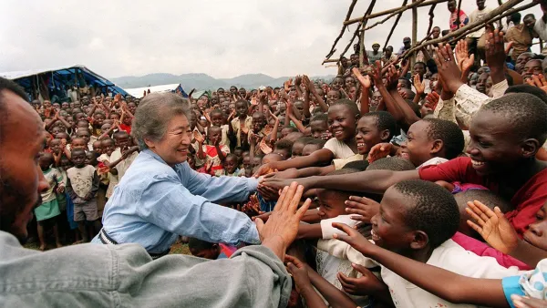 Headline image: As United Nations High Commissioner for Refugees, Sadako Ogata was known for her on-the-ground presence, such as this visit to a camp for Rwandan refugees in what was then Zaire in February 1995. Photo by P. Moumtzis/UNHCR.