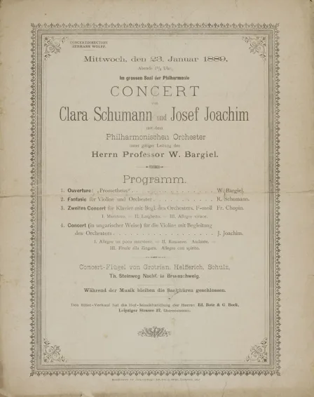 They contain a wealth of information: when, where, what, and with whom Clara Schumann performed on a particular occasion. One of the archives I visited for this project, the Robert Schumann Haus in Zwickau, has the complete run of her concert programs. That means that we can watch as she selects and discards repertoire over the years or decades, which was an important way in which she shaped her own public image. We can essentially follow her on tour, observing how she adapted to local musical economies and won over local audiences. And, we can watch her build networks of fellow performers and musical entrepreneurs.